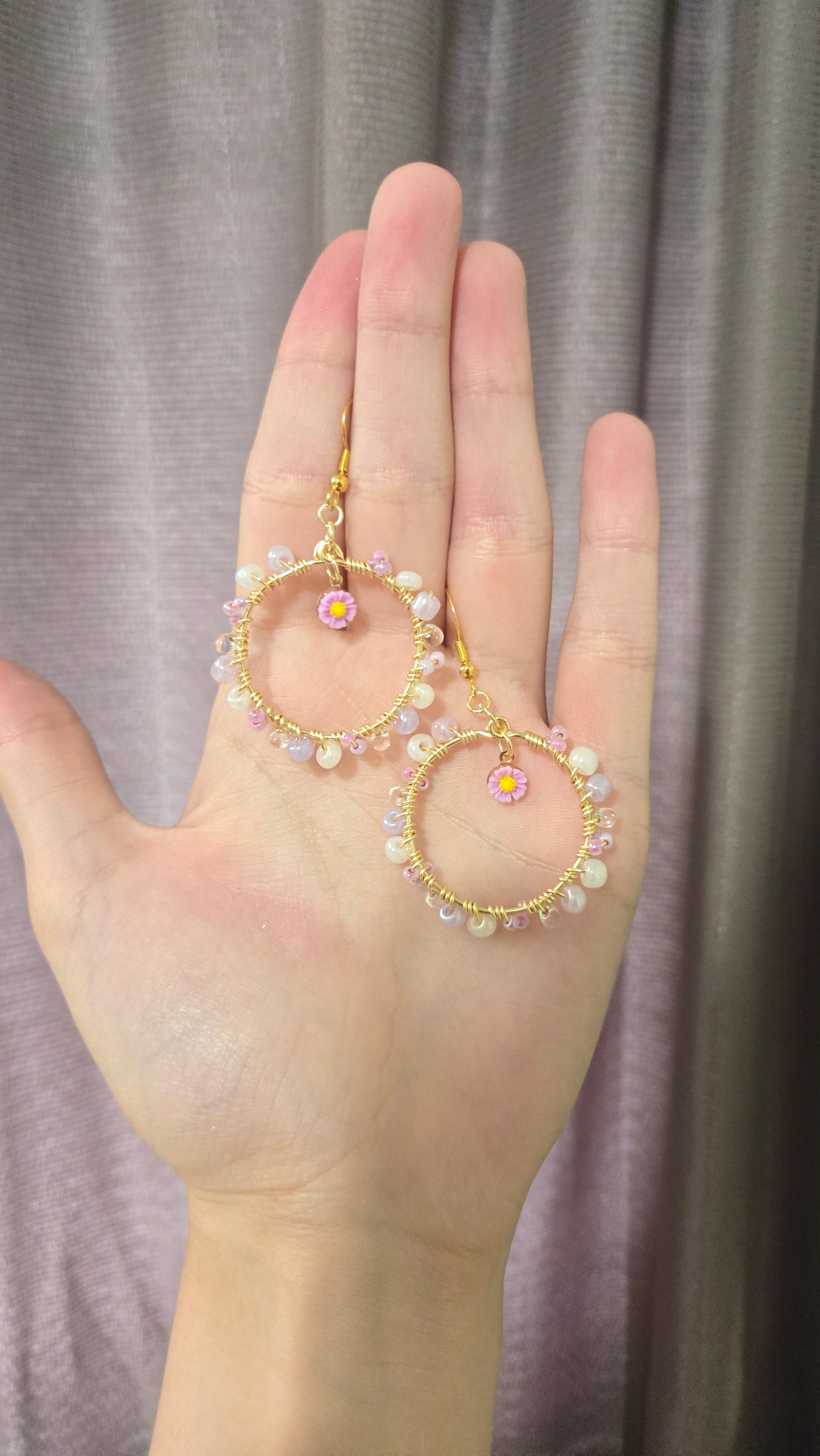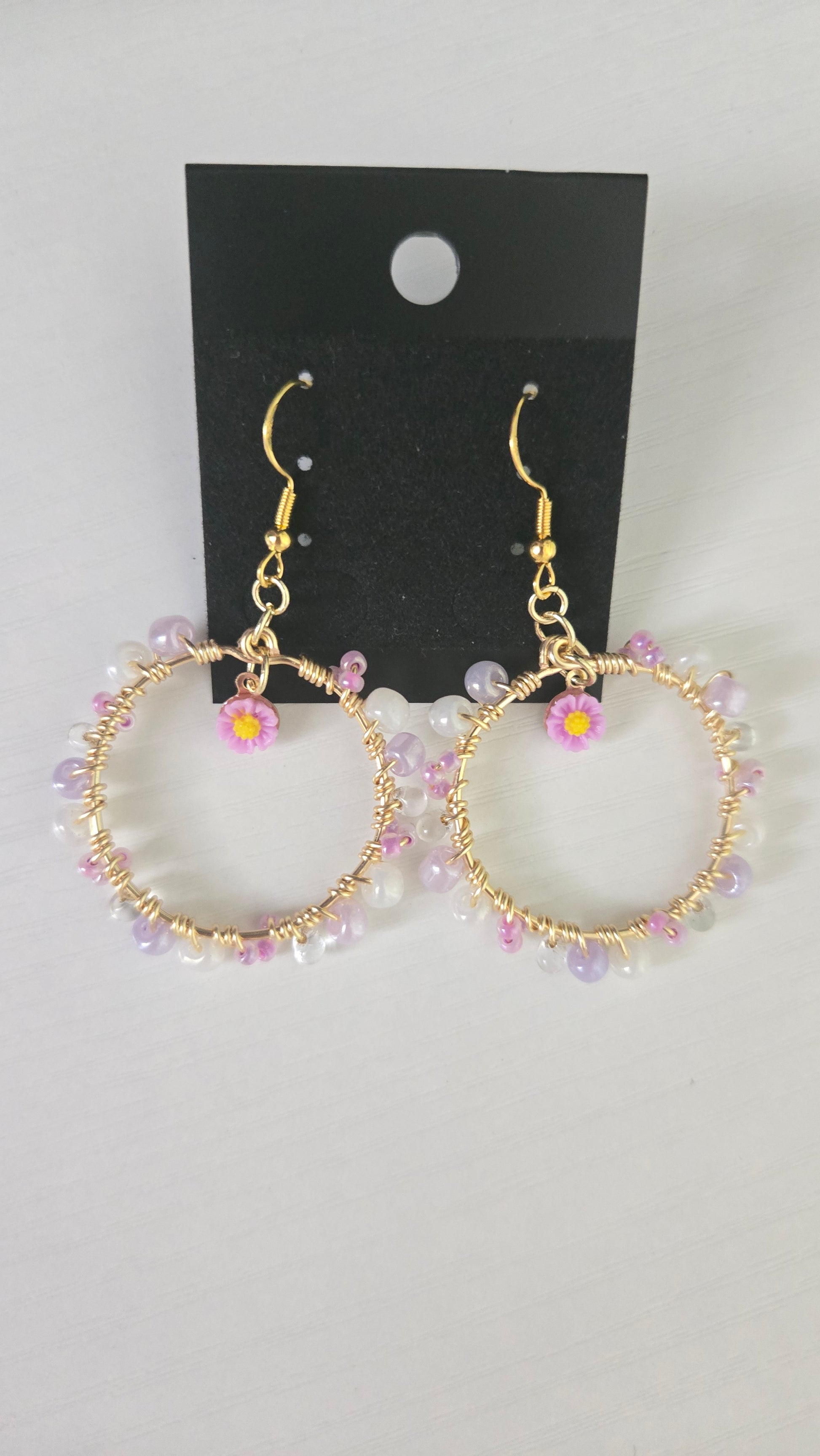 Purple Daisy Small Wire-wrapped Earrings